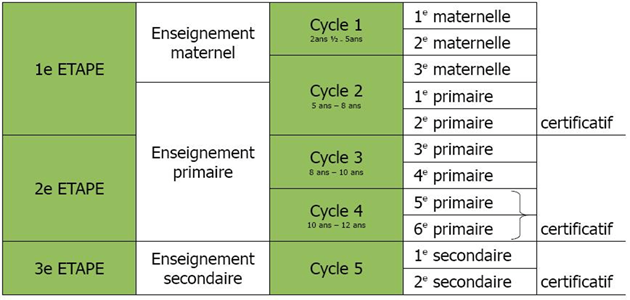 L’école est organisée en cycles fonctionnels. À l’intérieur d’un cycle, l’enfant évolue à son rythme.